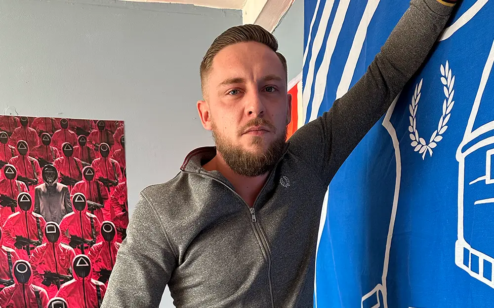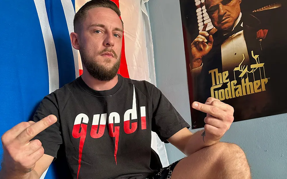 Blake’s style is unmistakably British. Casual gear, no fuss, straight talking energy. He’s got that “local lad who’s done well” vibe — the type who’s comfortable at home, comfortable on camera, and very aware of the effect he has. There’s attitude in the stare, a hint of trouble in the grin, and zero interest in playing it safe.