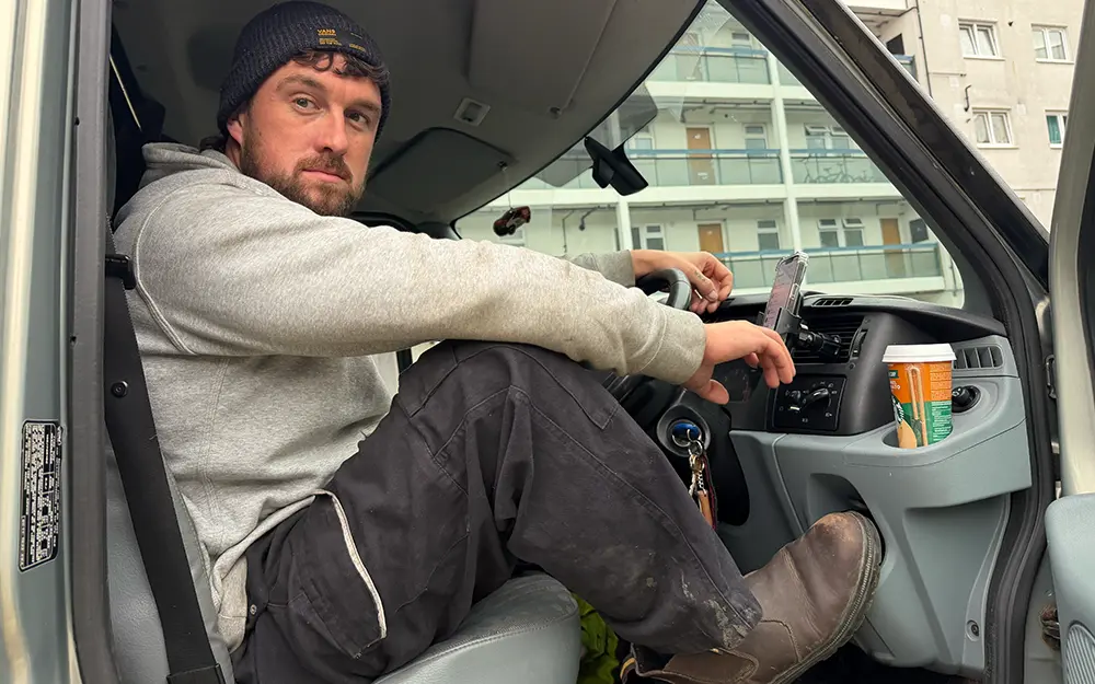 Whether he’s leaning in the van door, taking a call in his hi-vis, or stretched out catching a breather, Owain brings that unmistakable working-man energy. No posing. No pretending. Just a bloke who’s comfortable in his skin and knows exactly how he comes across.