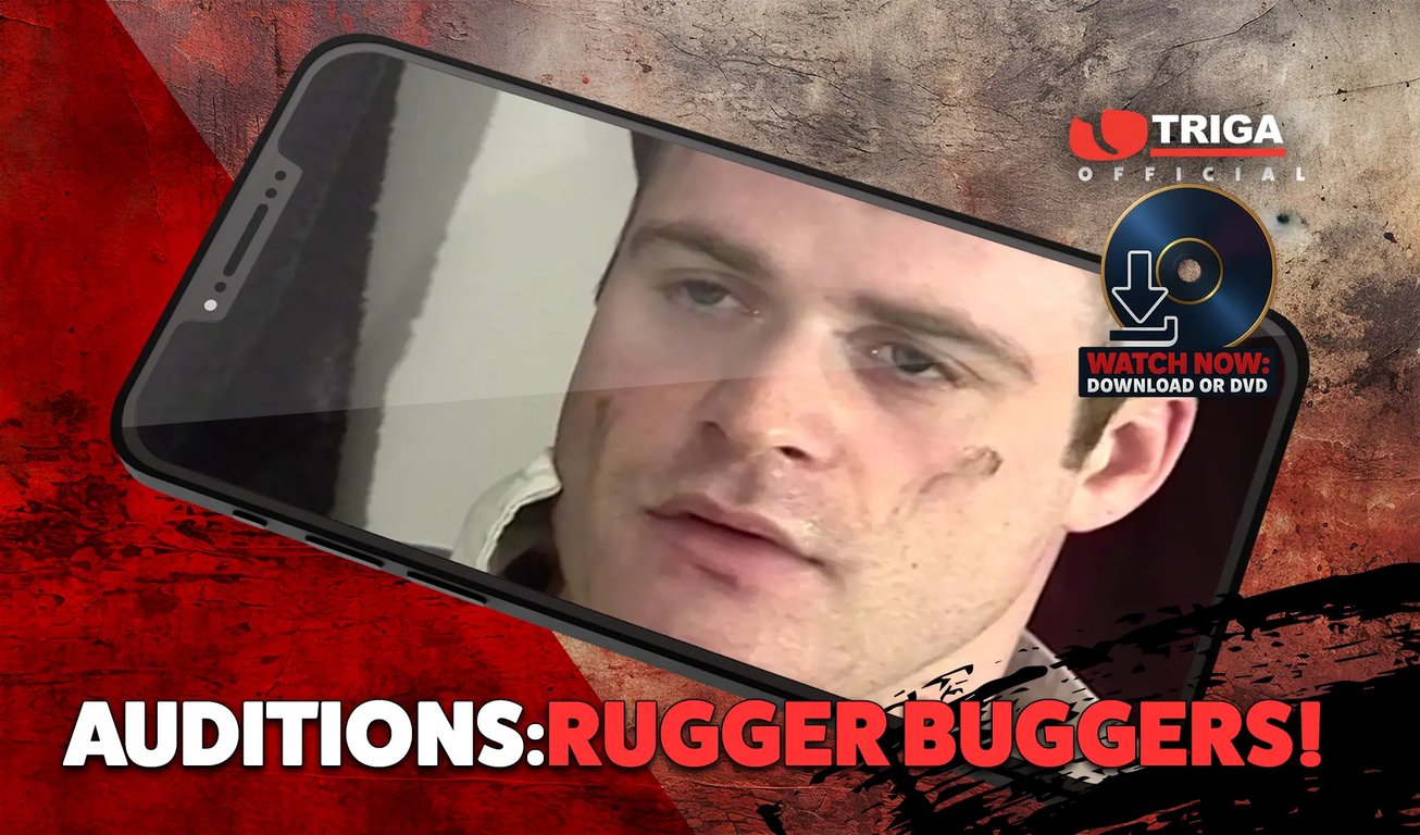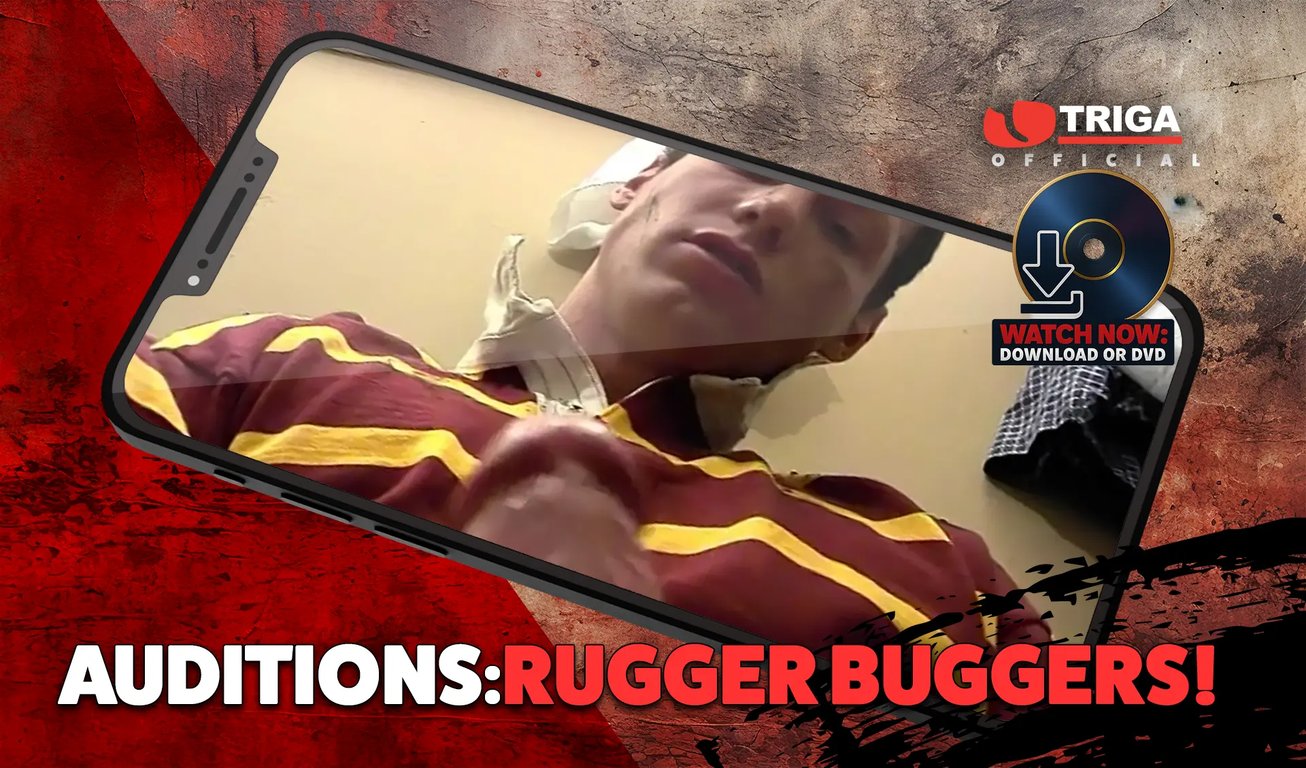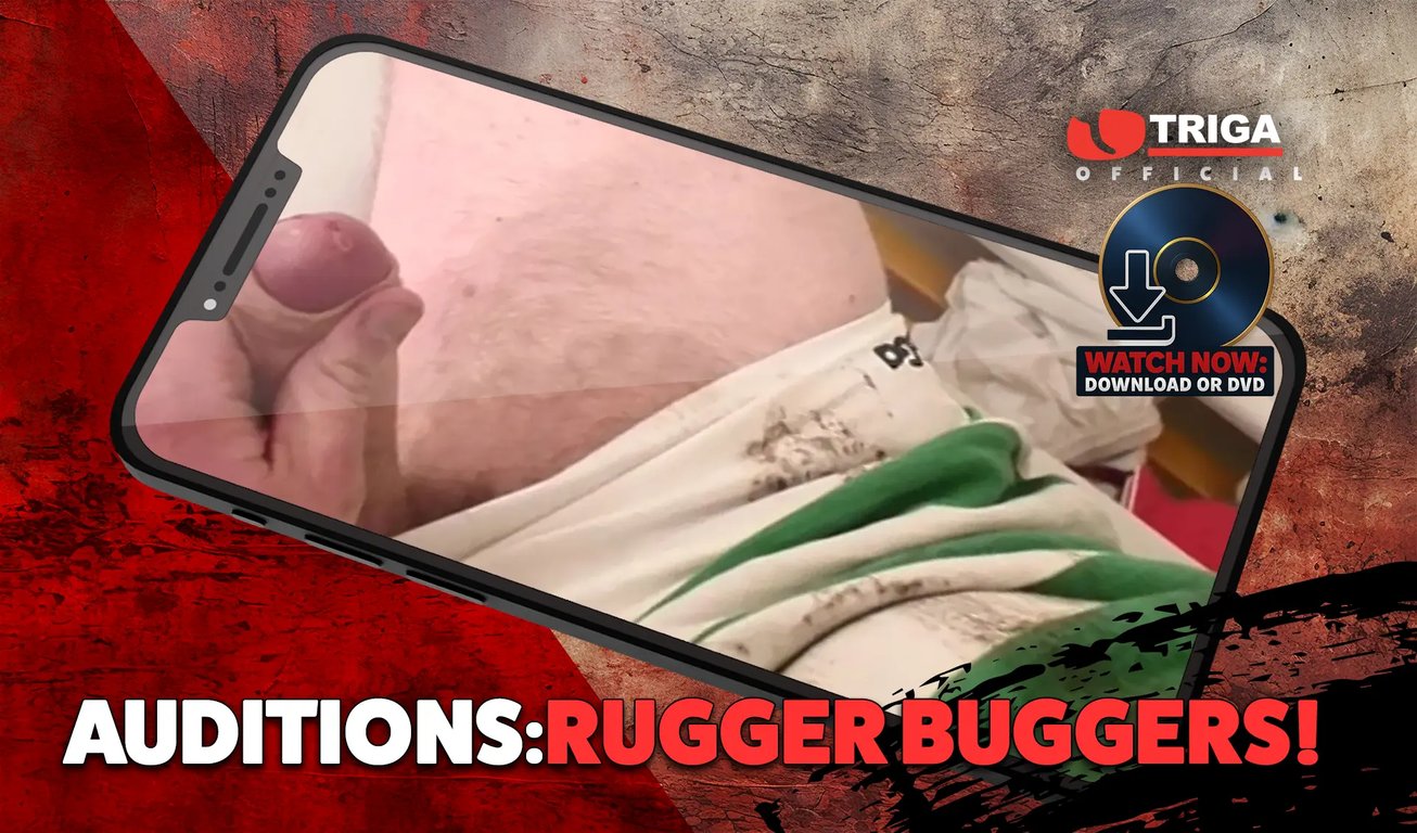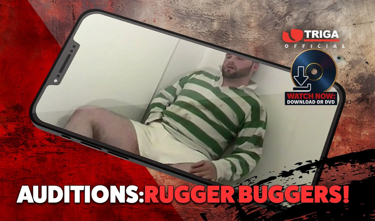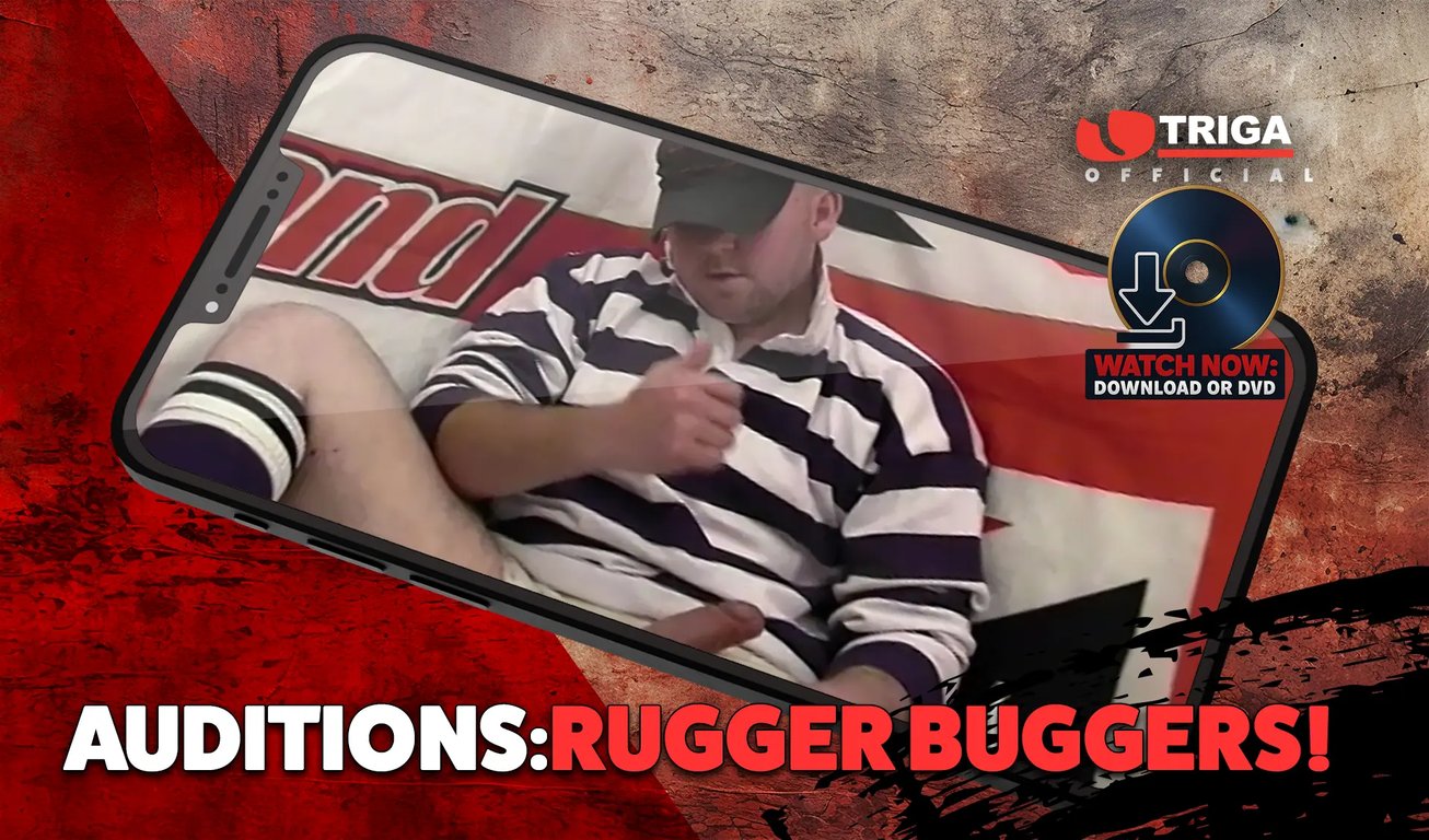 Auditions Rugger Buggers: Prime British Beef! Our Rugby Orgy Movie was packed to the brim with fit n hard-muscled lads and as always we wanted to fill the film with as many fellas as we could-however with this one we had too many! You can never have too much of a good thing so here we are with the auditions of the blokes that made it and also those that we could just not fit in! Bloke after bloke in this film drop their shorts and strip off their shirts so us dirty bastards can take a real good look at them in full close-up– they gotta prove they got what it takes and they can get hard as a rock and dump a right good load of spunk when required and this lot pass the test with flying colours! Big blokes with big fat cocks and sets of bollocks to match! Auditions Rugger Buggers More Men than you can possibly shake your cock at!me natural exhibitionists, wanked and played with till they show what they’re made of! Triga welcomes all New Cummers!”