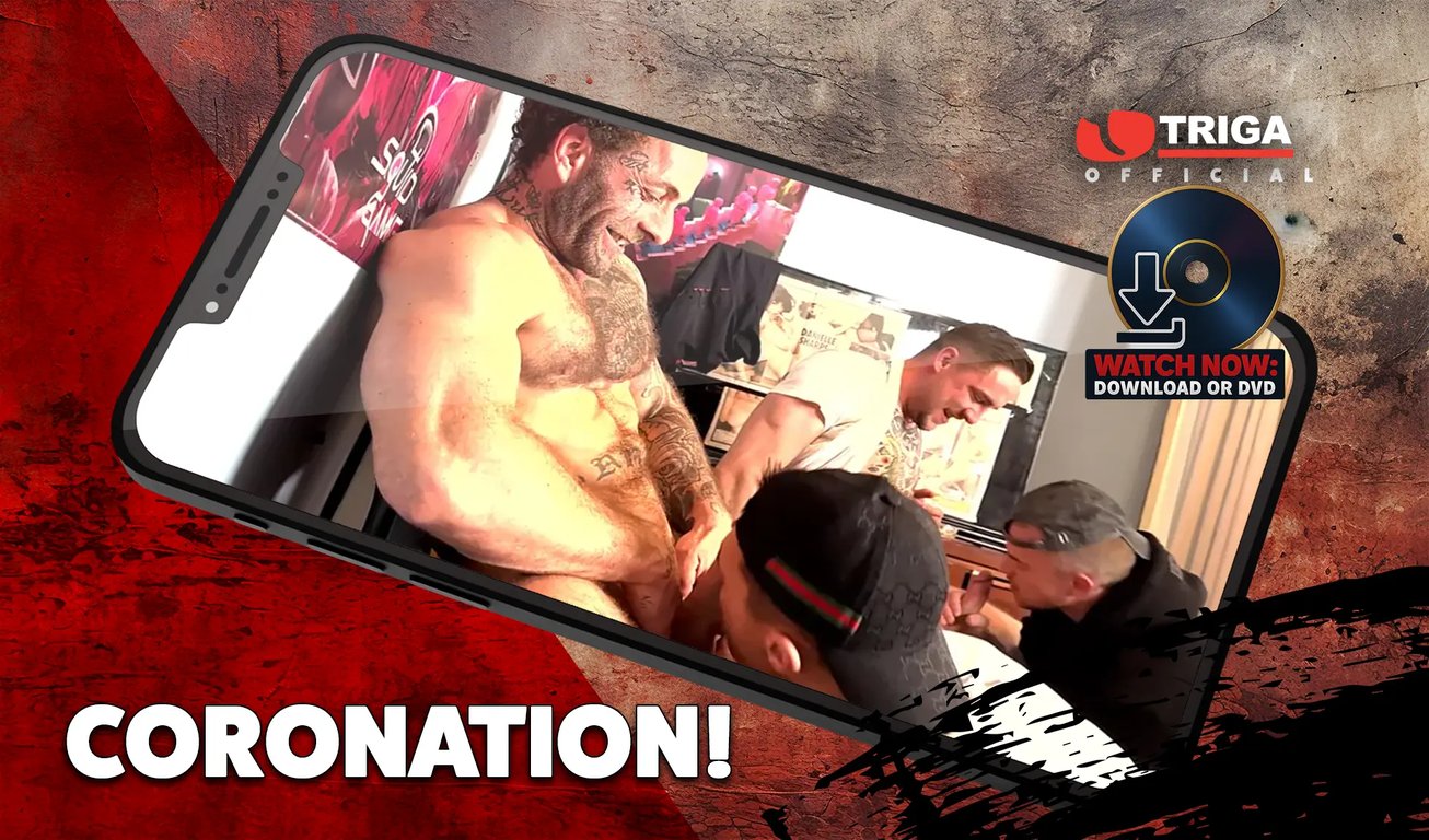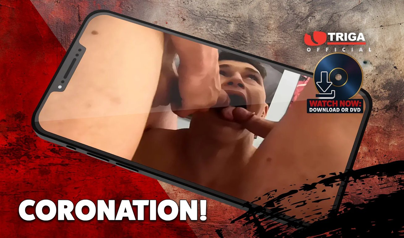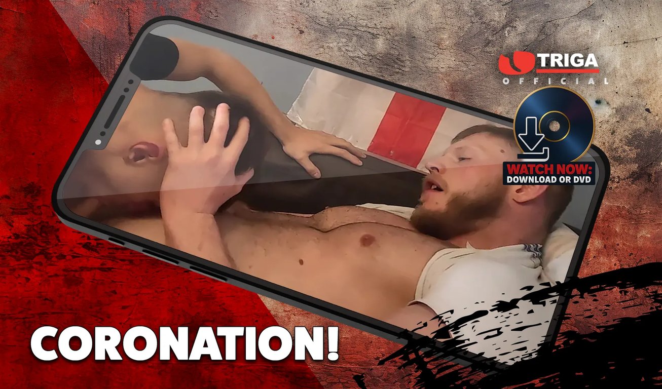 In this blockbuster Triga movie it’s double trouble with two of our filthiest films wrapped up in one hot package: ‘CORONATION’ and ‘YOOF OF TODAY’. 150 minutes of pure, hardcore fucking. Scene one features horny fitlad James Welsh, who’s found kickin’ a ball about in the subway where he gets picked up by two other beefy lads, big bruiser Rich Brum and his super-hot mate Blake James. Sublad James Welsh is an expert bottom boy and at deep throatin’ the biggest, fattest cocks around and in this movie he gets to show off his skills to the max. We can guarantee you’ll be moaning along to a massive full-time climax as he gets pumped at both ends by these two horse cocked, strapping geezers. And if that’s not enough to drain your batteries you’d better get your Sceptres and Orbs out because part two of this filthy double bill, filmed to celebrate the CORONATION, does what Triga does best: it features 4 new lads ready to strip off and show what they’re made of for our cameraman, Crown Jewels and all : and they can’t fuckin wait to get this right royal gang bang going. Heavily tatt’d slab of beef Manc Geezer is the star of this royal variety show and he soon gets crowned king of cock as he pounds the other lads’ arses like there’s no tomorrow and they all get royally anointed with a big fat faceful of spunk.