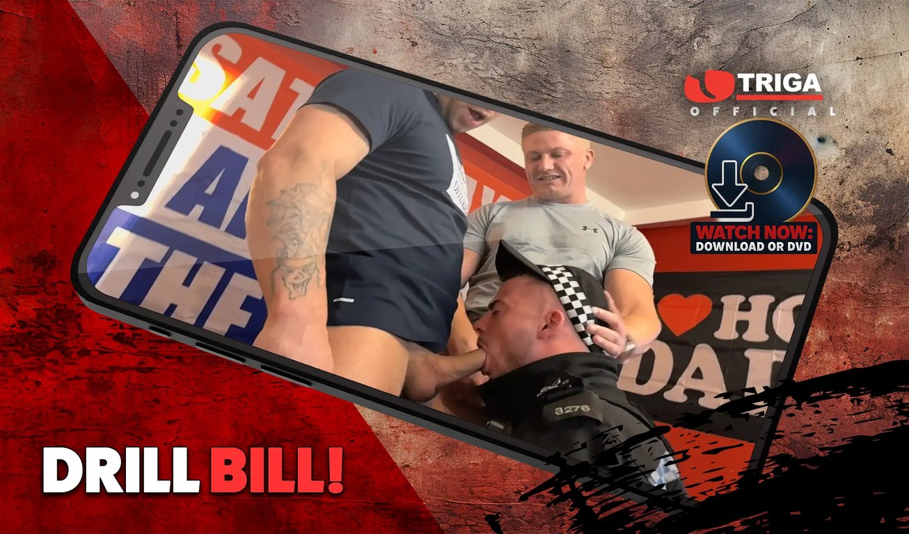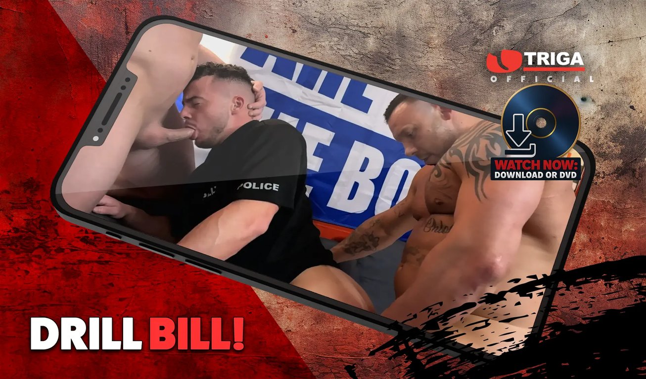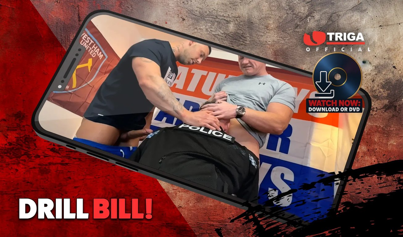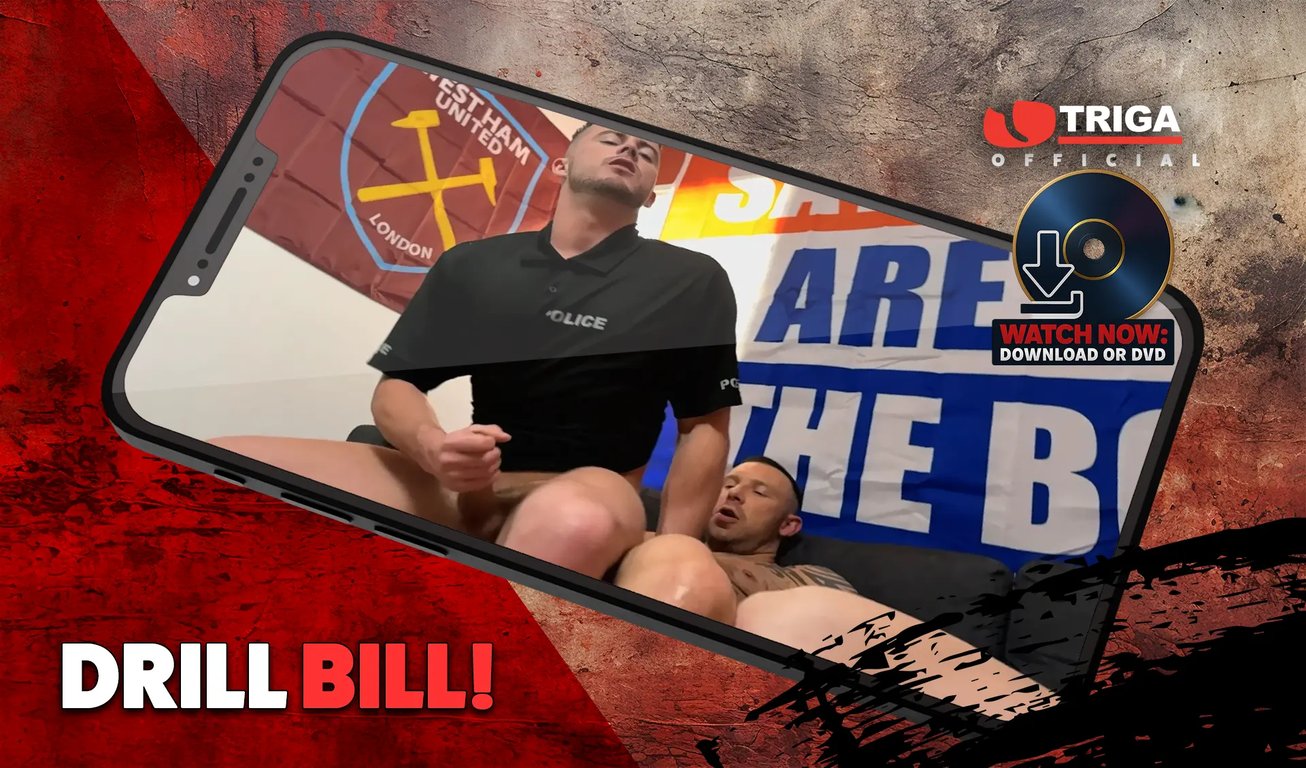 Our favourite Essex fella Romford Ron and fit as fuck cheeky bugger Mersey Ryda ran into each other outside the local café the other day. Thank fuck that we were on hand to catch up on their unexpected reunion, eh lads! Guess what…they’ve met before but under totally different circumstances, though. But hey, that’s all in the past, right? Meanwhile, with the local area plagued by a surge of wild, noisy house parties, new on the beat, fresh-faced local community Sergeant ‘P.C. Cockworthy’ is doing his best to keep things under control the best way he can! Unfortunately, though, he’s in way over his head when he unexpectedly interrupts our two lads’ long-overdue catch-up… Drill Bill! One badge meets two cocky targets, and the law fights dirty.” It’s a rollercoaster 130-minute double feature from Triga which also includes a brand-new workman’ filth flick ‘Builders Brunch’. When the bricks fall, it’s more than tempers that rise; these muscly builders prove there’s no job too dirty or cocks too big that they can’t manhandle.”