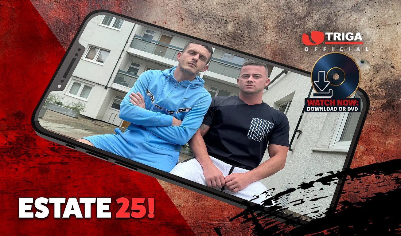 Sams had a fucking rough day. Not only has the poor bastard been dumped for the night by work into a rundown skanky London council flat but the hot fucker needs some proper meaty cock. You know what its like when your ‘holed’ up at work and all you can think about is some lads tight hole to bash your wood into and all your boss is thinking is your spread sheet performance. Technology eh….we can’t live without it now can we? Grindr isn’t a place for hearts and flowers and romance but it’s absolutely cracking to find a couple (or more) of fit lads from your local estate innit! Triga Films proudly present: Estate:25. Filmed entirely in the non gentrified Bermondsey where the lads are lads and the men are always fucking fit and horny. Introducing a brand new stella cast of lads with one thing on their mind…hot fucking cock. Running time 160 minutes of proper British fuckin and more. This is Triga on point.
