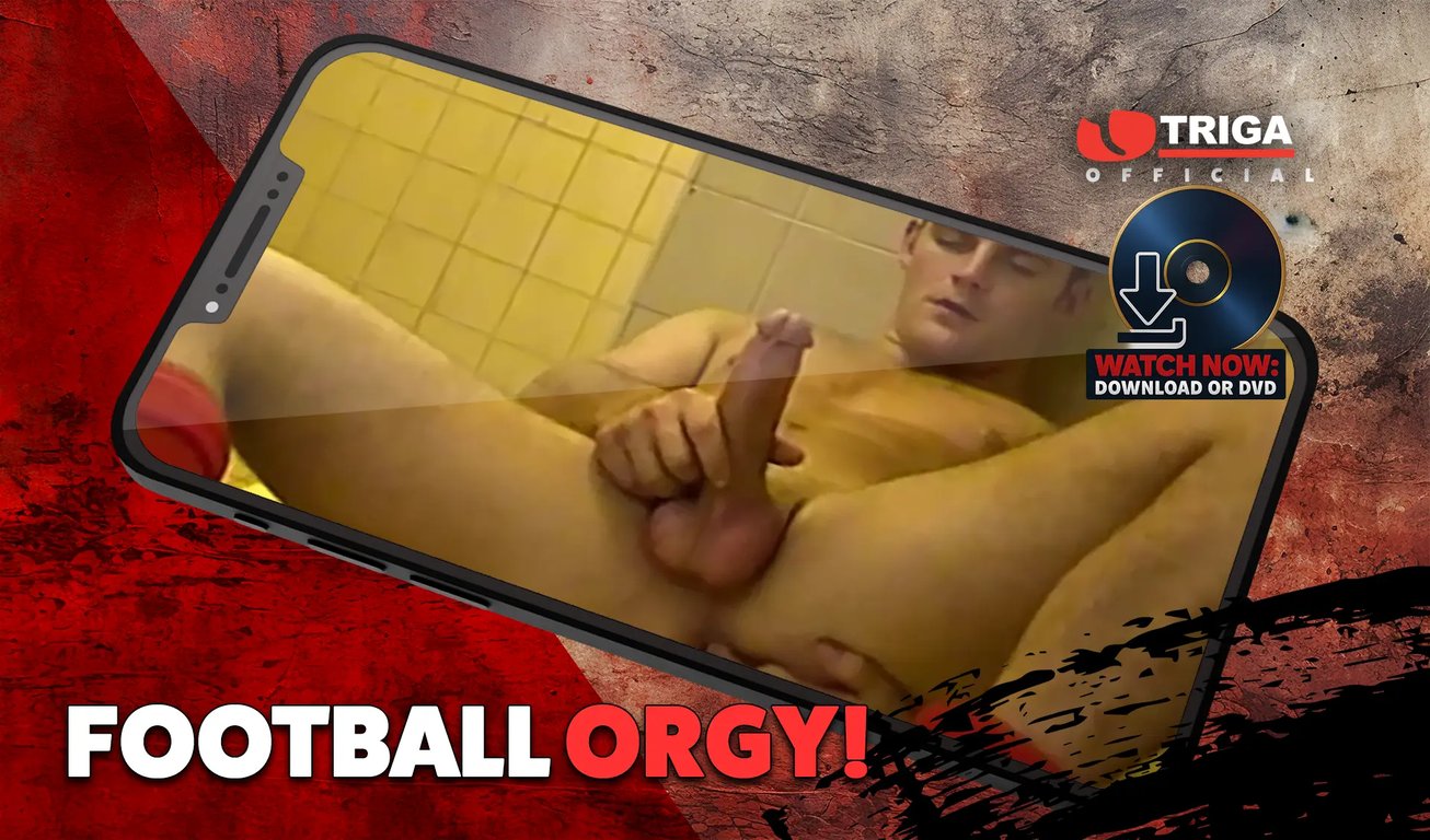 The one and truly original British Triga film that kicked off the footie fetish movies in the UK. This film starts with showing the lads on a local footie field in a mucky game of soccer. One goes to the changing rooms where the slim guy in his early 20s cleans off his boots, then starts to work his big, uncut cock. When the other lads come in, he puts it away, but soon he’s joined by the other players. Horny and ready, Football Orgy Vol 1 is jammed full of ordinary guys in a raunchy setting, sucking cock and working their tools. There’s a good mix of ages, with a good-looking muscled guy and an overweight one. There’s no music, only the sound of the water in the pipes and the grunts and groans from the lads as they work up to dumping their loads! This is as real as you will get. One of the built older guys gives us a surprisingly high shoot, followed by another from a sexy bisexual red-head. As they go into the showers, the firm good-looker wanks himself off as he lies on the bench – The best british porn film ever! Lads messin’ about in footy kit is really what Triga was built on & Football Orgy Vol. 1 is a perfect example of that.