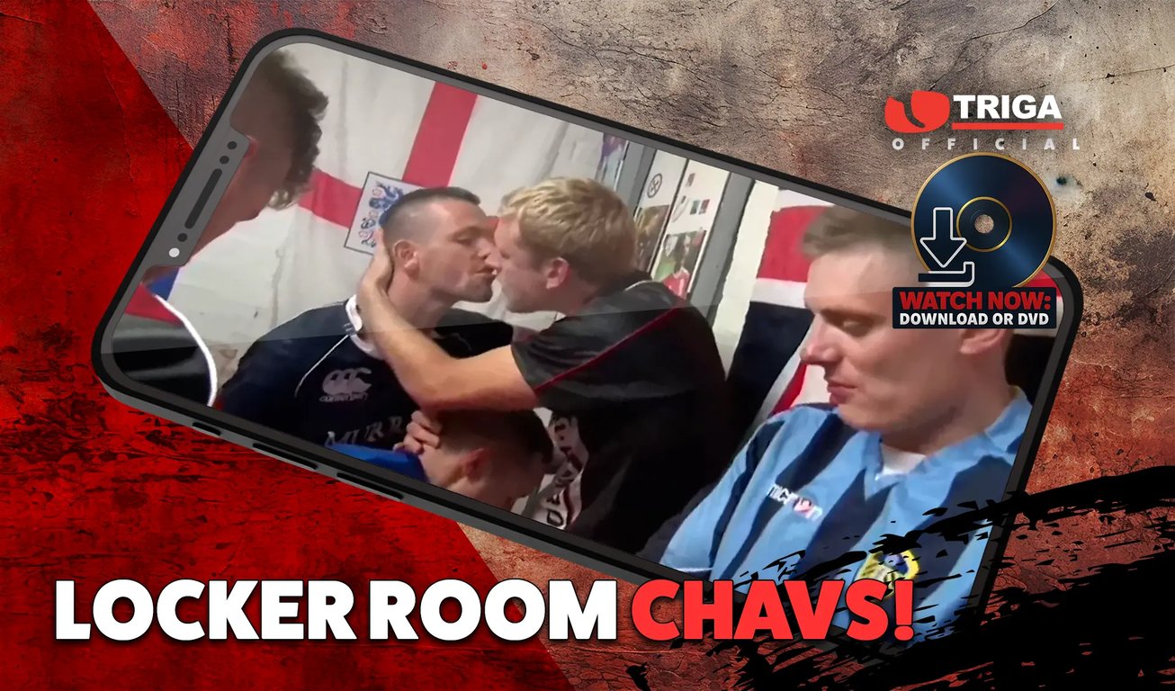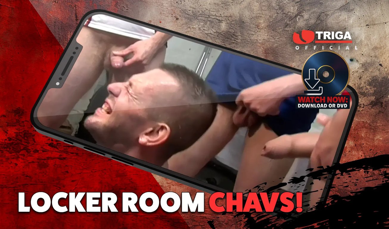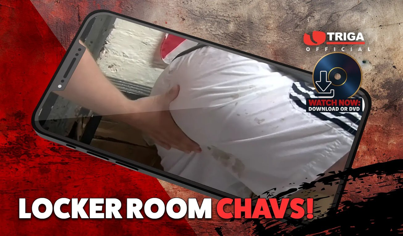Triga Films Presents A Shorts N Socks & Throbbin’ Hard Cocks! Locker Room Chavs! If you like sporty scallies who don’t give a fuck then Triga’s Locker Room Chavs is definitely the film for you. 5 British ‘Chavs’ feeling horny get down and dirty as they fuck each others brains out and tongue each others holes in this classic Triga wankfest. A few celebrations in the Locker room after training is a great way to wind down and get some teak bonding goin’ – especially when you’re busting for a piss and your best mate wants to swallow it!! Watch Chav Manc lad Brandon getting dildoed before Martin and the boys earn a well earned group piss. Its golden showers day today as the boys get drenched in piss and spunk these ‘Chavs’ know what they like innit LOL ! You will be rock hard here as these seriously sexy bastards give attitude and head …. there’s plenty of cock to go around boys don’t you worry ! Locker Room Chavs is a spunk stained Classic Triga Gangbang. If you like your ‘Chavs’ rough and ready trust me this free for all is the film for you