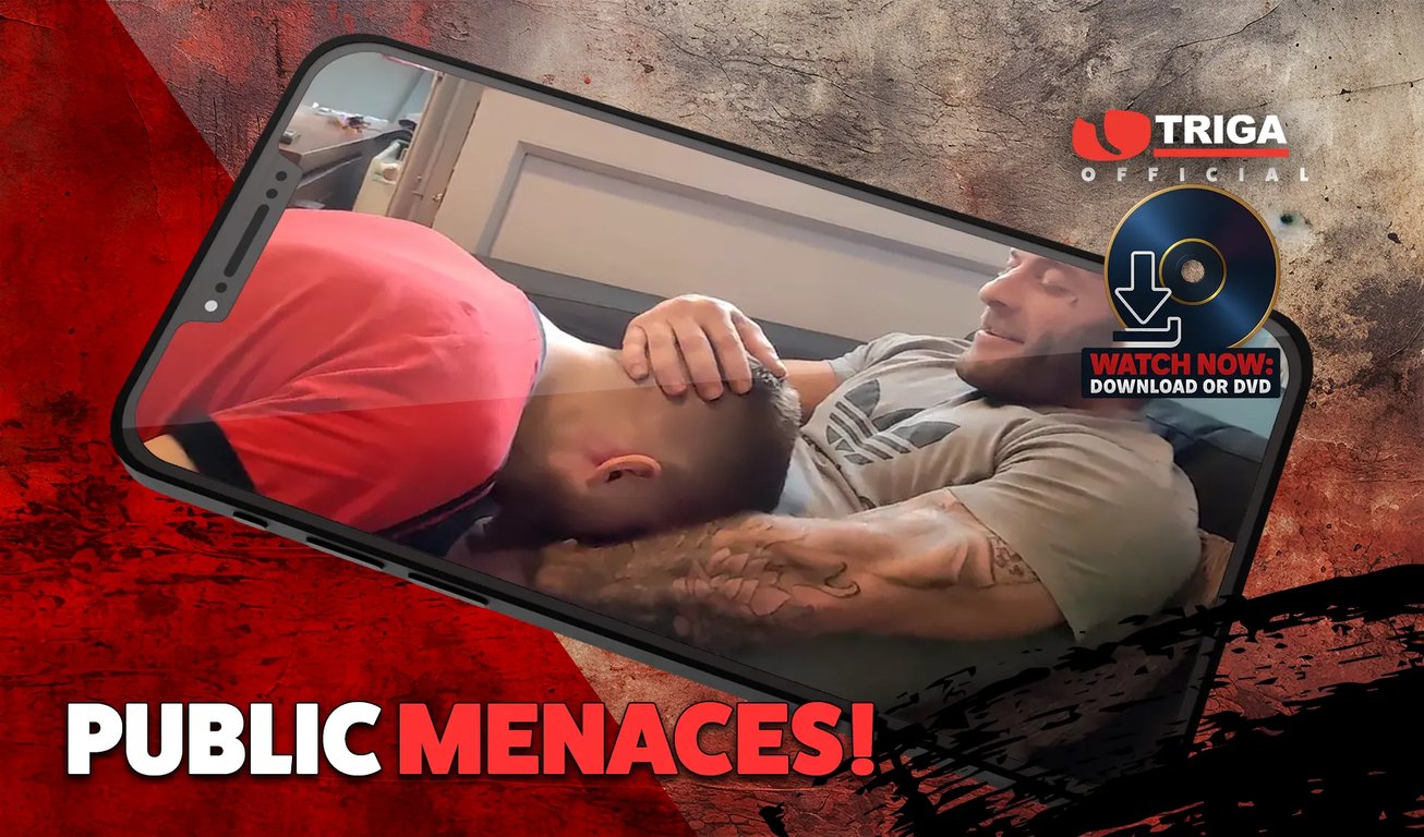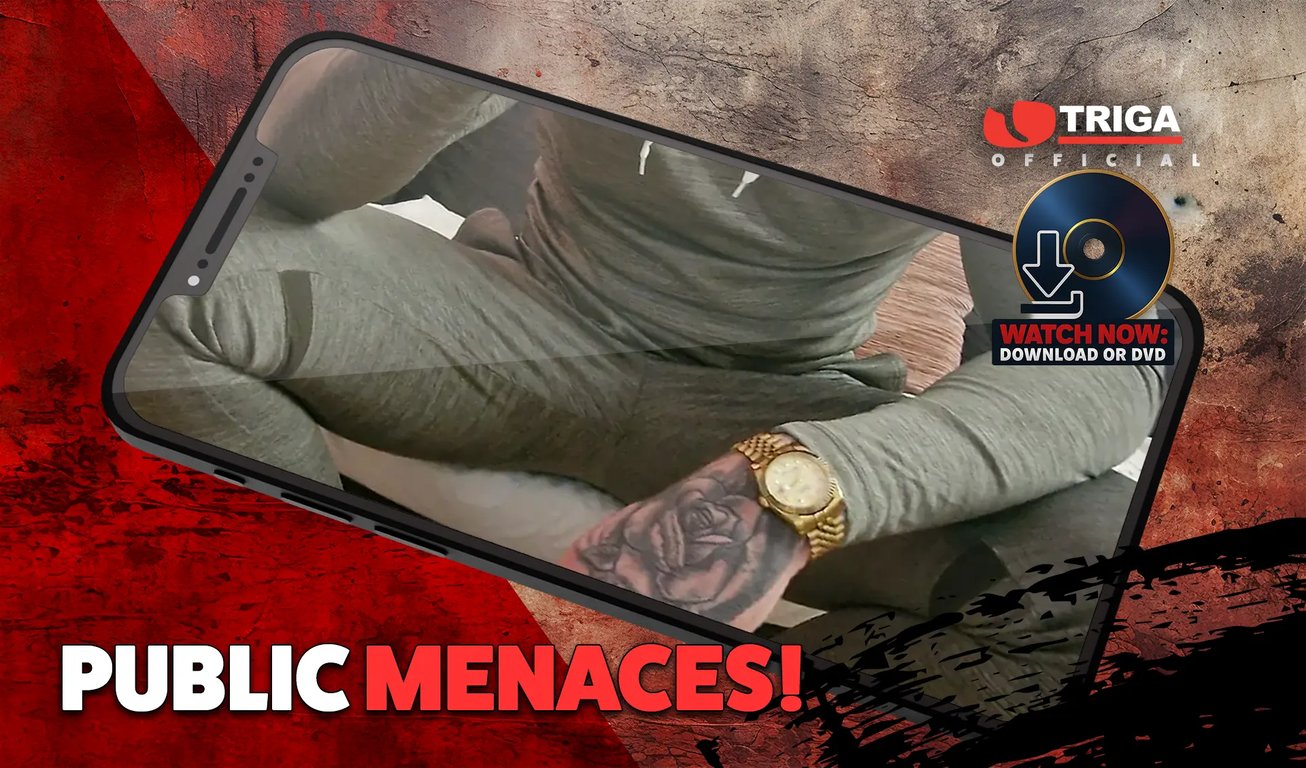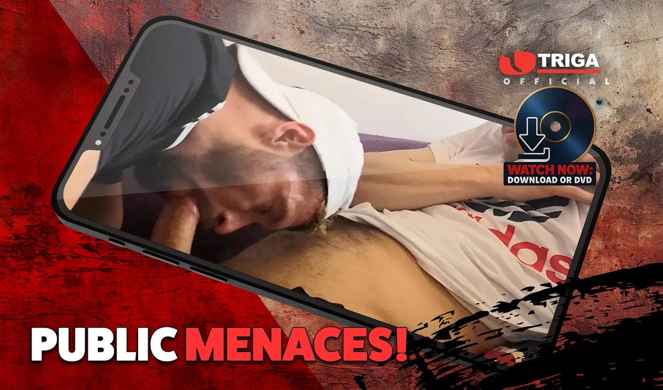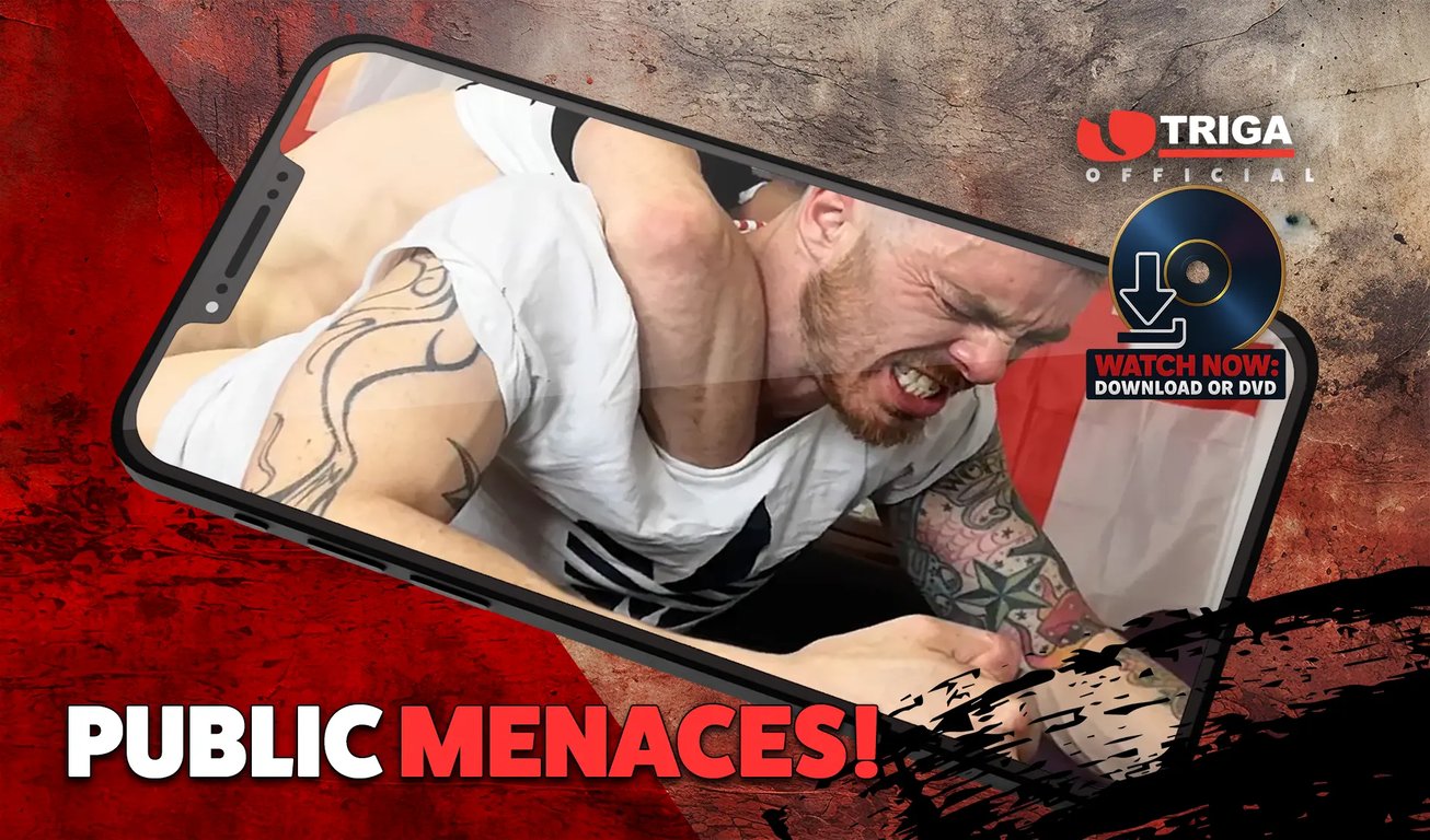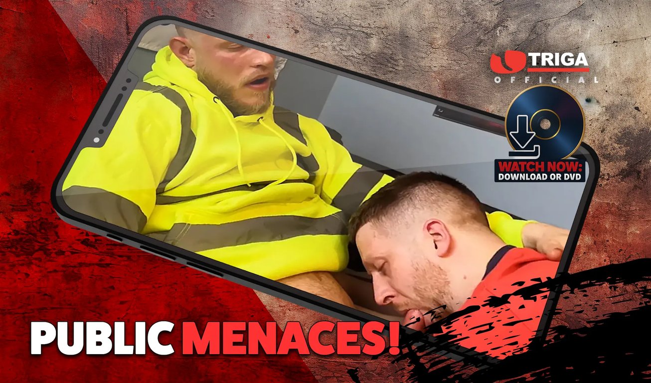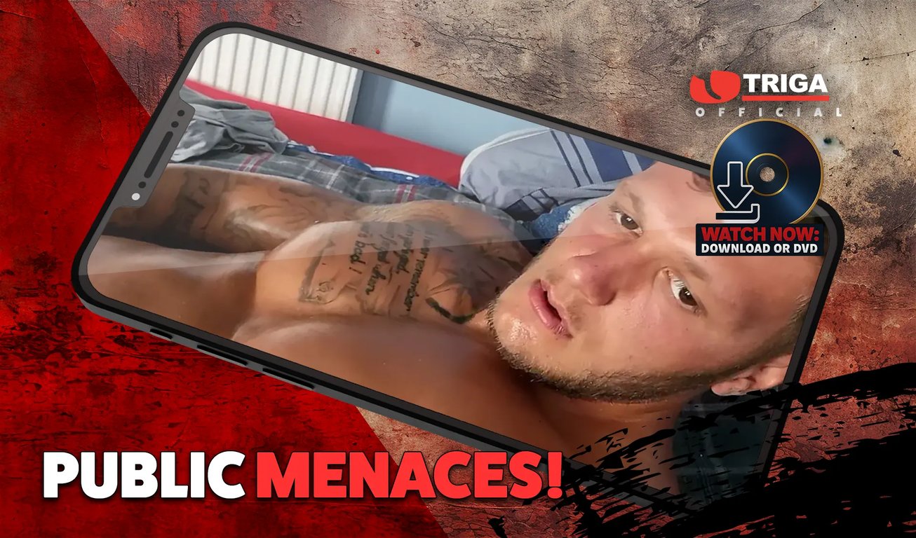 As everyone knows there’s a fuck of a lot of menaces to society these days- none more so than this dirty bunch of mean fuckers featuring in Triga’s new 7 man, 4 scene spunk fest. Summers here and it’s hotter than ever and so are this sweaty crew- you know what it’s like when the heat gets to you – randy as fuck and you’ll shag the nearest hole available. First up we’ve got Stacked BiG C who was last seen throwing his massive meaty cock about in the movie “Category A”. Well he’s back and he’s stripping off and showing us what he’s got in this sizzling solo performance. This handsome fella’s got more brawn than the local butchers and he’s not shy showing it off. If that’s not enough to get your juices flowing then next up there’s a filthy 3 way featuring Rich Brum and Manc Geezer last seen together in “Coronation”. Here they work each other up into a horny frenzy talking about their best ever shags until their cocks are fit to burst, so they grab the nearest lad they can find and shag him to fuck- talk about both ends burnin’…..