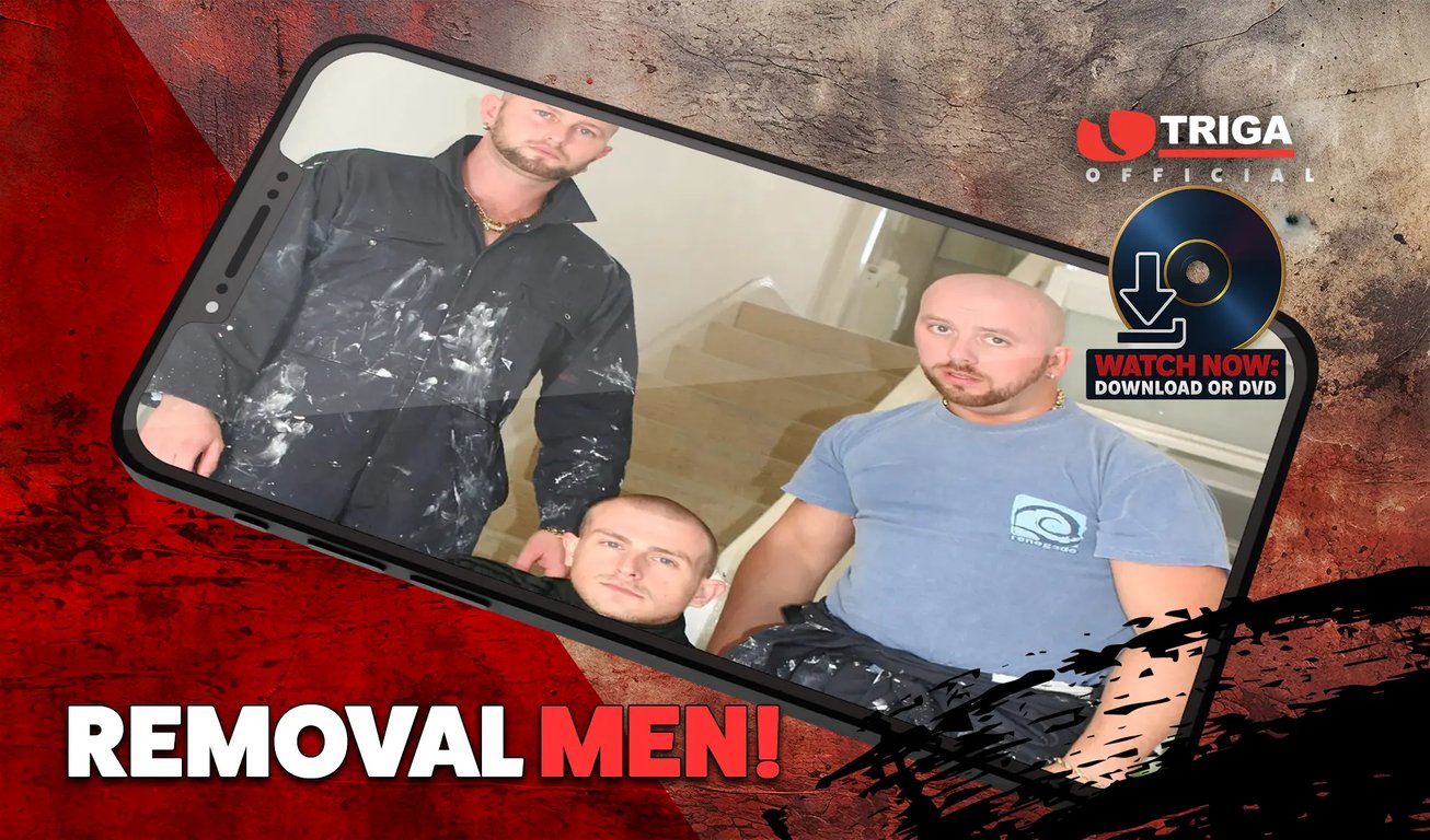 They say moving house is the most stressful thing you can do in life. Well, how about a bit of stress relief Triga style! When young lad Steve decides to cut some corners moving out of his parents’ house he first off gets his scally mates to help him shift some of his stuff only to find out that they’re more interested in smoking a few smokes and then sucking his nob and fucking his arse than lifting boxes! After that, he decides to call in the professionals to do the heavy lifting. When two burly blokes turn up in a van Steve finds he ain’t got enough dosh to pay them and the two big-cocked geezers take what they are owed in the only way they know-how. By fucking Steve’s arse like there’s no tomorrow!