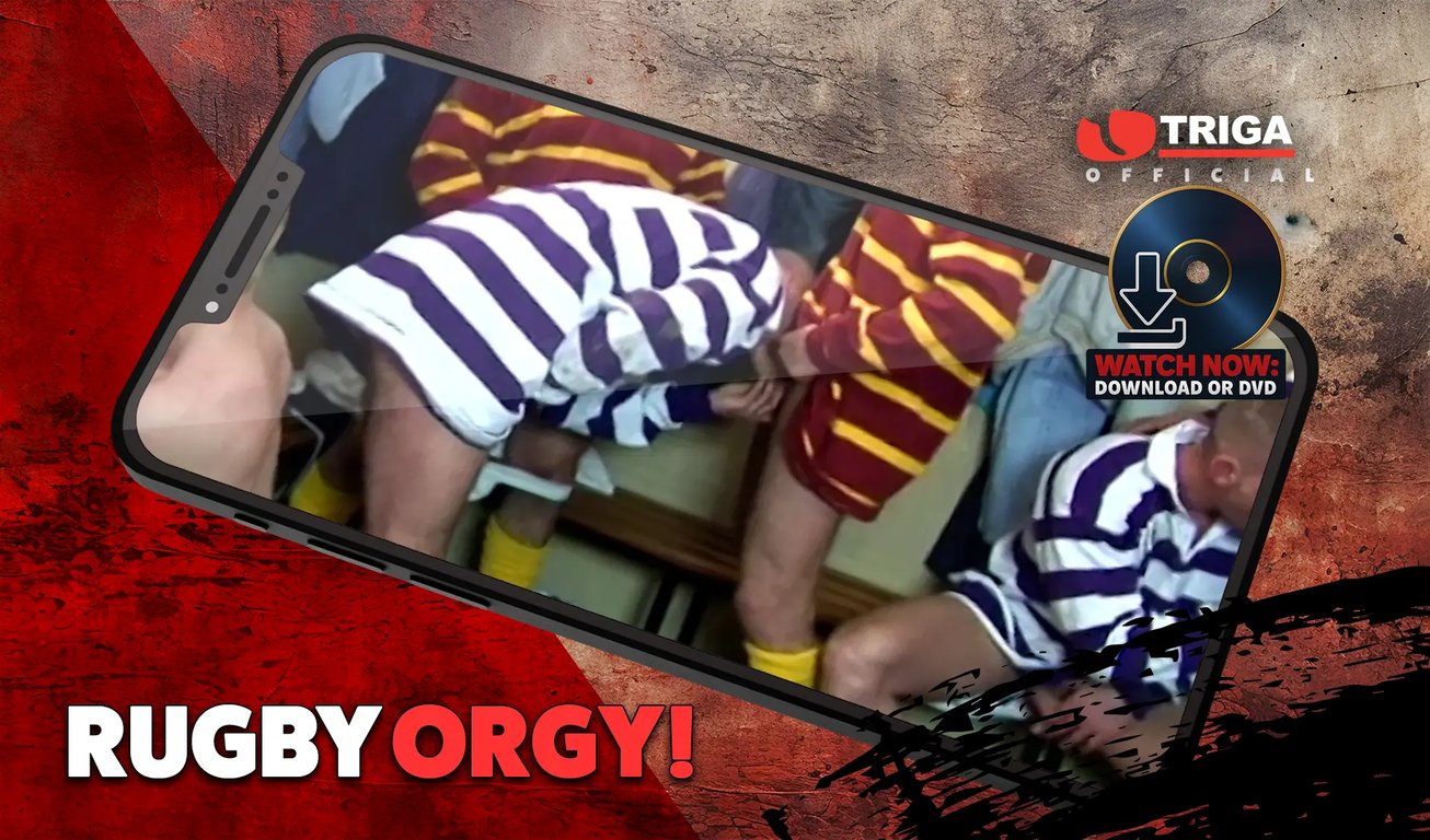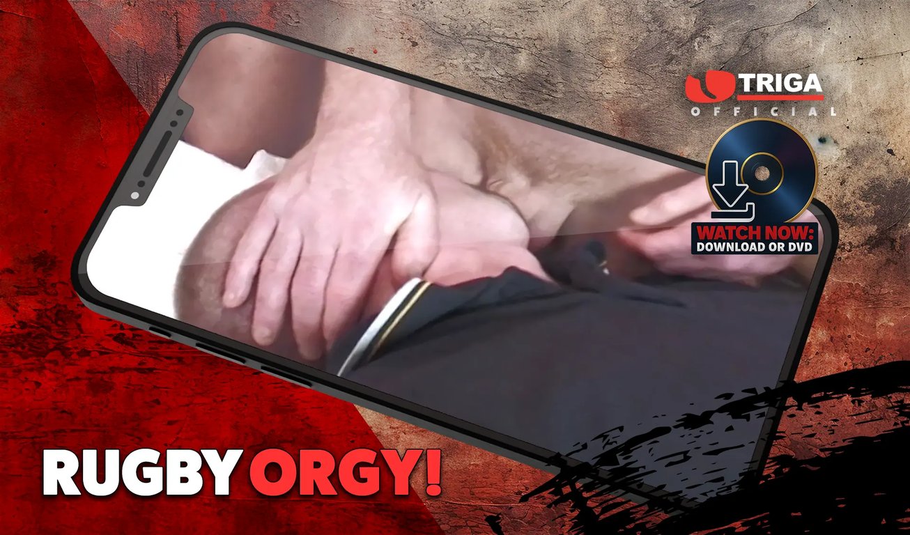 This is a classic Triga movie and the ultimate Rugger fantasy made real, featuring a whole horny-as-fuck team of lads! Remember wanking off to Hull Kingston Rovers on the telly? Well, this Triga fuck fest takes it a whole lot further! After a practice session, the lads get stripped off and into the showers and get stuck into each other in ways they never could out on the field where the ref likes to play by the rules and blow his whistle non-stop. But these burly blokes have a few lessons of their own they want to play with him when they get back in the locker room and it ain’t long before he’s swallowed his own fuckin’ piss! The ref gets to rim all their arses and then teams up with the fly-half to get a proper gang bang shafting on the team massage table and a faceful of hot spunk from all of them! So if you like real British blokes in fuck off Rugby kit – this is the movie for you. Twickenham won’t be the fucking same after watching this as your hands will be straight down your boxers, ready to knock one out. You know the score!