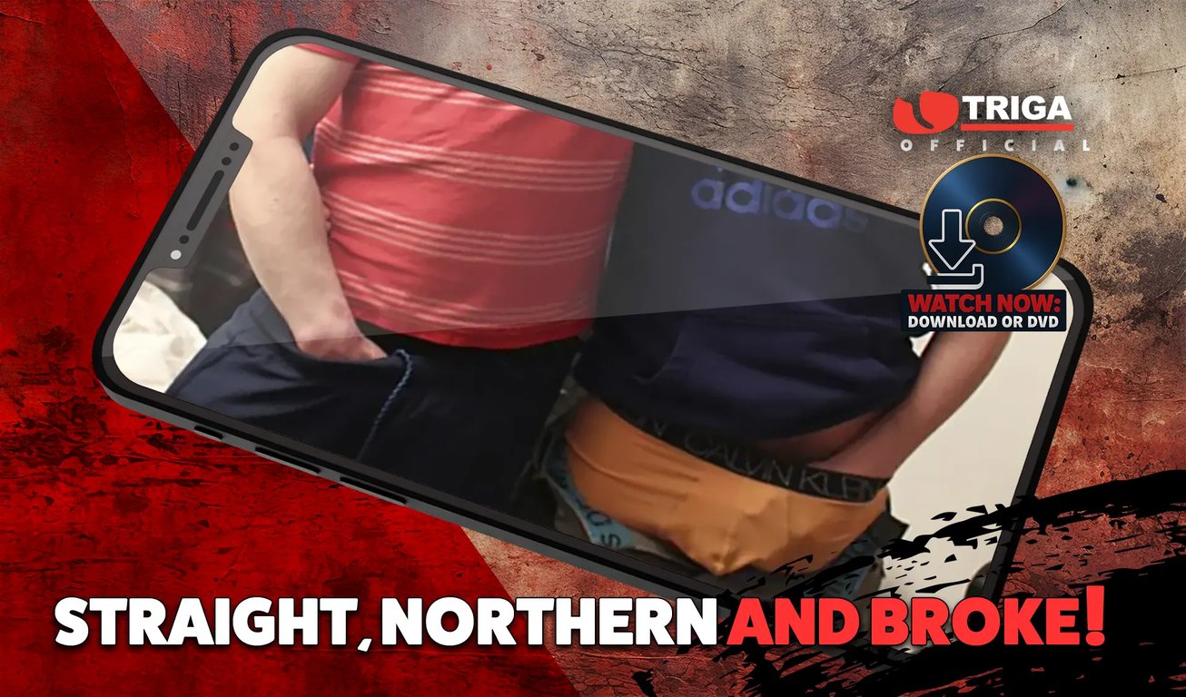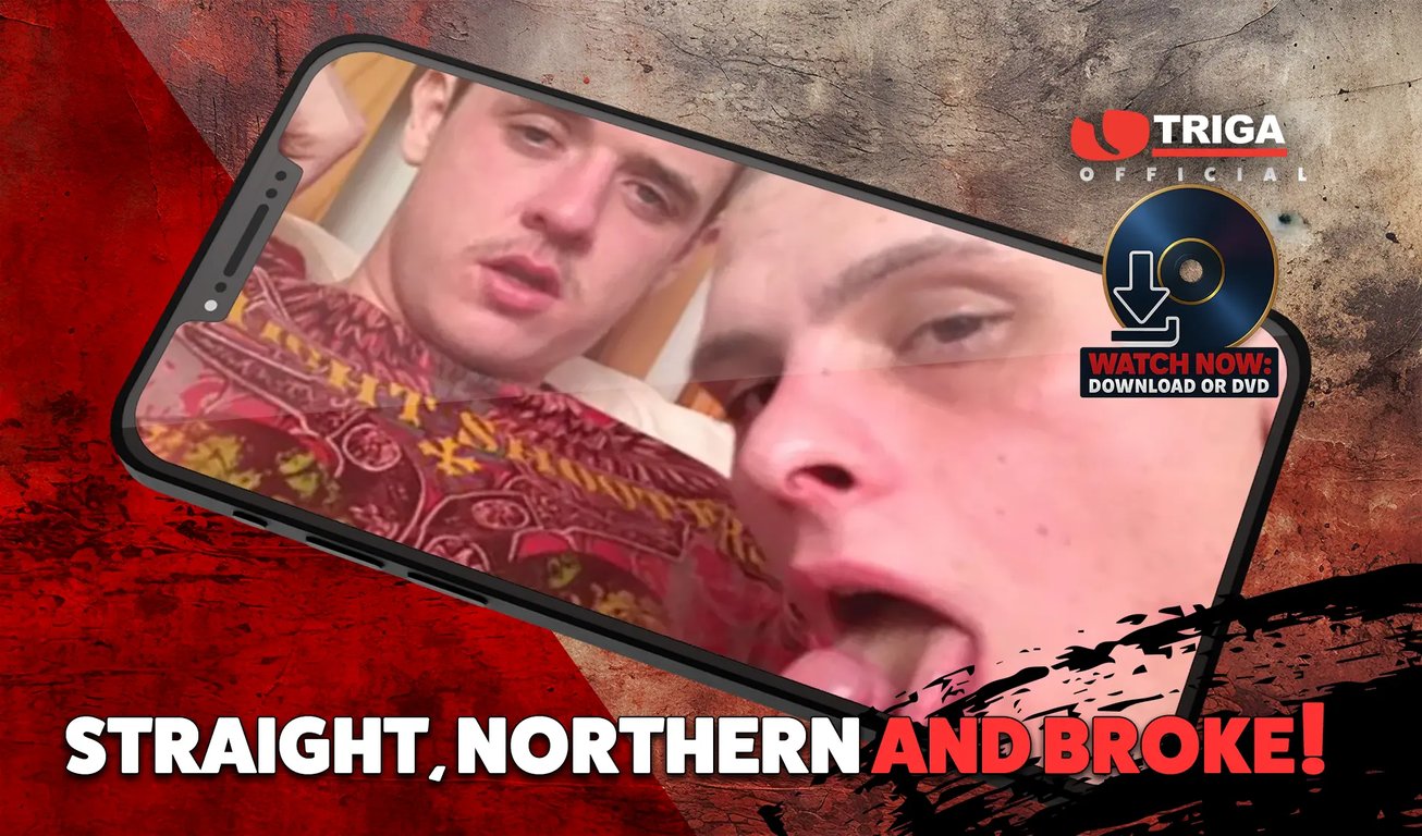 As we all know: Lads being lads they’ll do pretty much anything to get their cocks sucked, won’t they? Getting their straight arses fucked is a bit more difficult, then again it’s surprising how easily a big fat cock slides up their fuck holes when a few tenners are waved in front of their noses! It’s a hard life up North and money is hard to cum by these days. What with the bedroom tax and the fuckin benefit cuts and sky high rents there’s hardly enough left over at the end of the week for ten fags never mind a bag of tinnies or for fuck sake even a night out on the town. So spending a few hours with your boxers round your ankles getting rodgered by your mates is an easy way to earn a bob or two, especially if you get a nice blow job into the bargain and spunk all over your mates face! And when the bloke from the council comes round after his unpaid rent it all fuckin kicks off as Danny and his scally mates drag him inside their flat and shag him! Triga gives a whole new meaning to rent arrears. Fuckin mint mate.