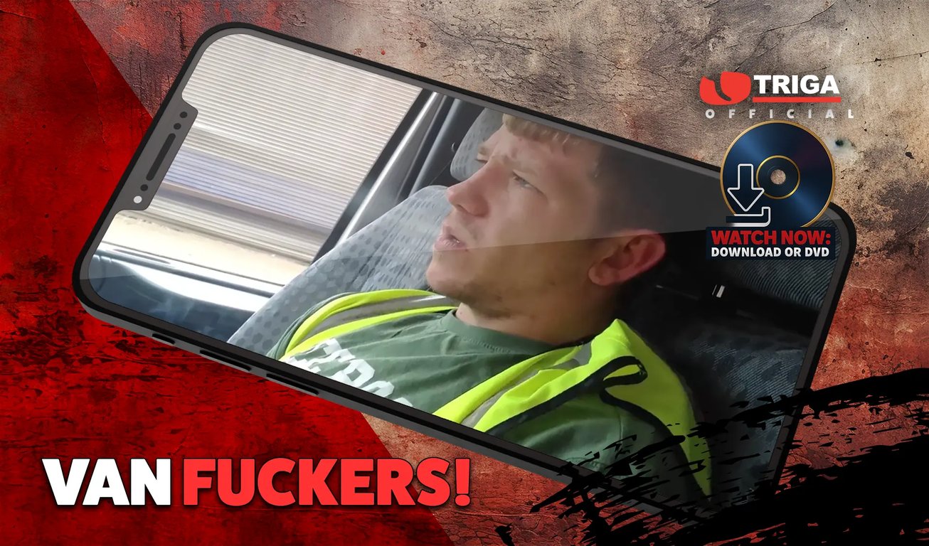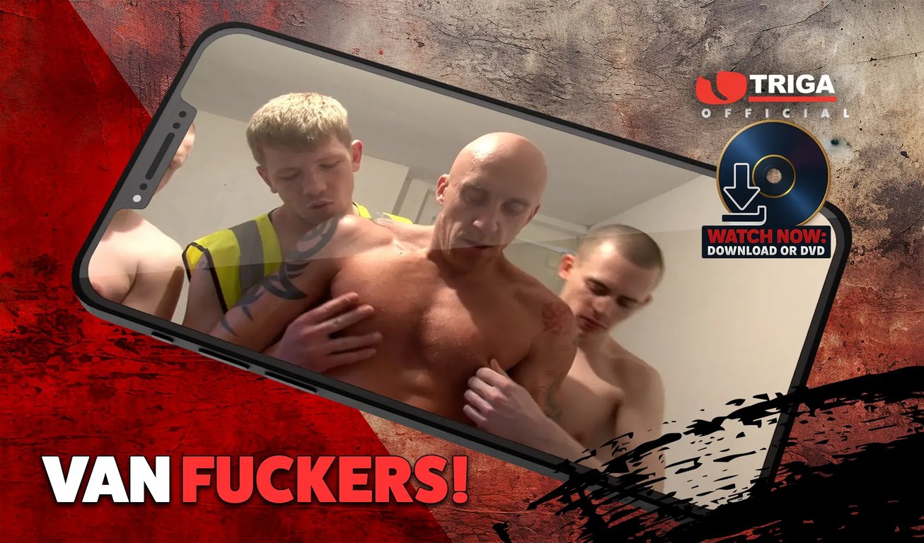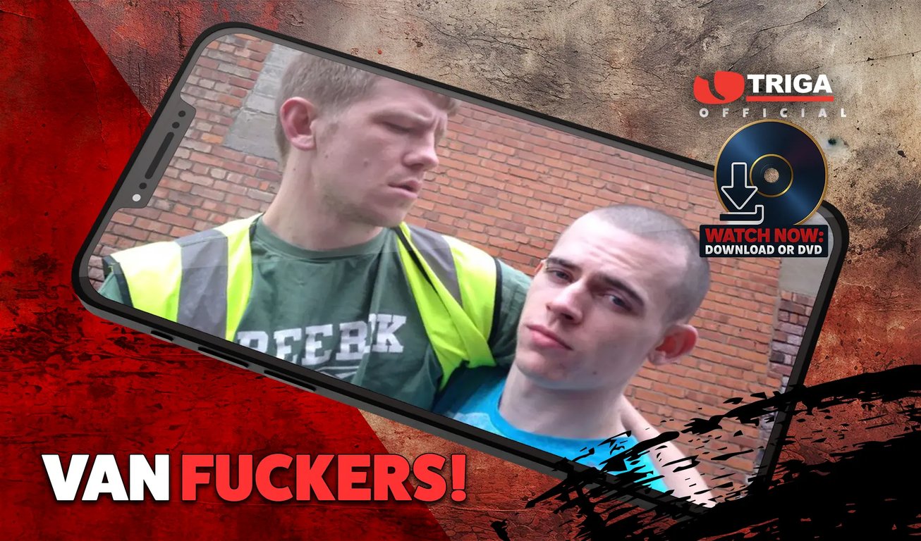 Get filled right up with this filthy ‘Fuckin n Truckin’ production. Those horny van men we see all the time on British streets – swearing, swerving, red light jumping, crotch-scratching cunts most of ’em. Their always in a hurry, cutting you up and speeding down your 20mph zone – and our lot ain’t any different! Filthy fittie Daniel and his mate Jimbo are your typical gob shite van drivers who like nothin more than parking up their battered old transit somewhere quiet for a smoke and seein if there’s any randy lads about to suck their big fat cocks and then take em round to their mates building site for an afternoon orgy. Our Daniel’s got a big load in the back and a few more in his sack ready to dump up some poor unsuspecting lads arse in this all spitting, all pissing Triga classic wiv bells on! Slam on yer brakes the filthy van man’s speeding up your cul-da-sac now!